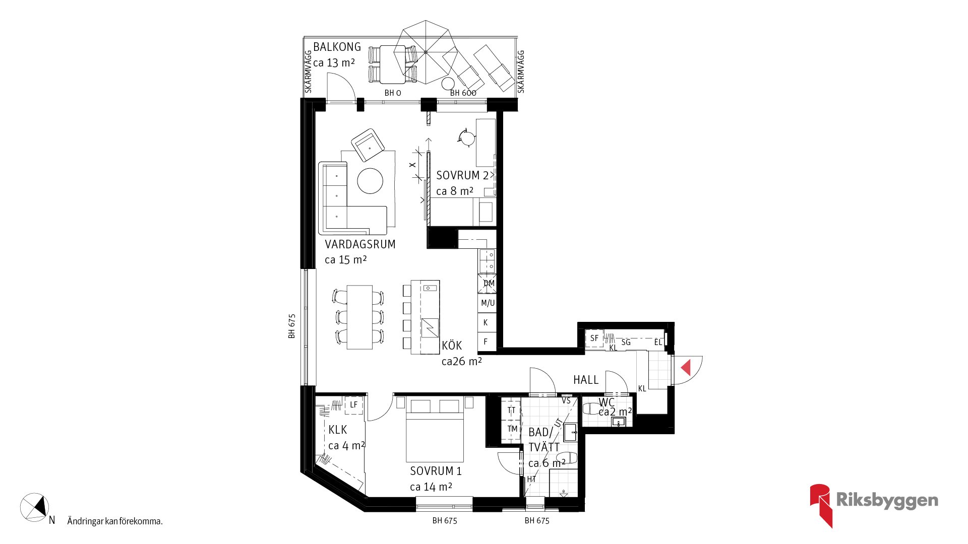 Rymlig 3;a om 88 kvm på andra våning. Hall med skjutdörrsgarderob. Social yta med kök och vardagsrum i öppen planlösning, köksö för extra förvaring och avlastningsyta. Sovrum 1 med rymlig klädkammare och ingång till badrum. Sovrum 2 mot parken. Balkong mot park om ca 12 kvm. Finns möjlighet att få ett större vardagsrum vid val av frånvalsvägg. Gästtoalett.