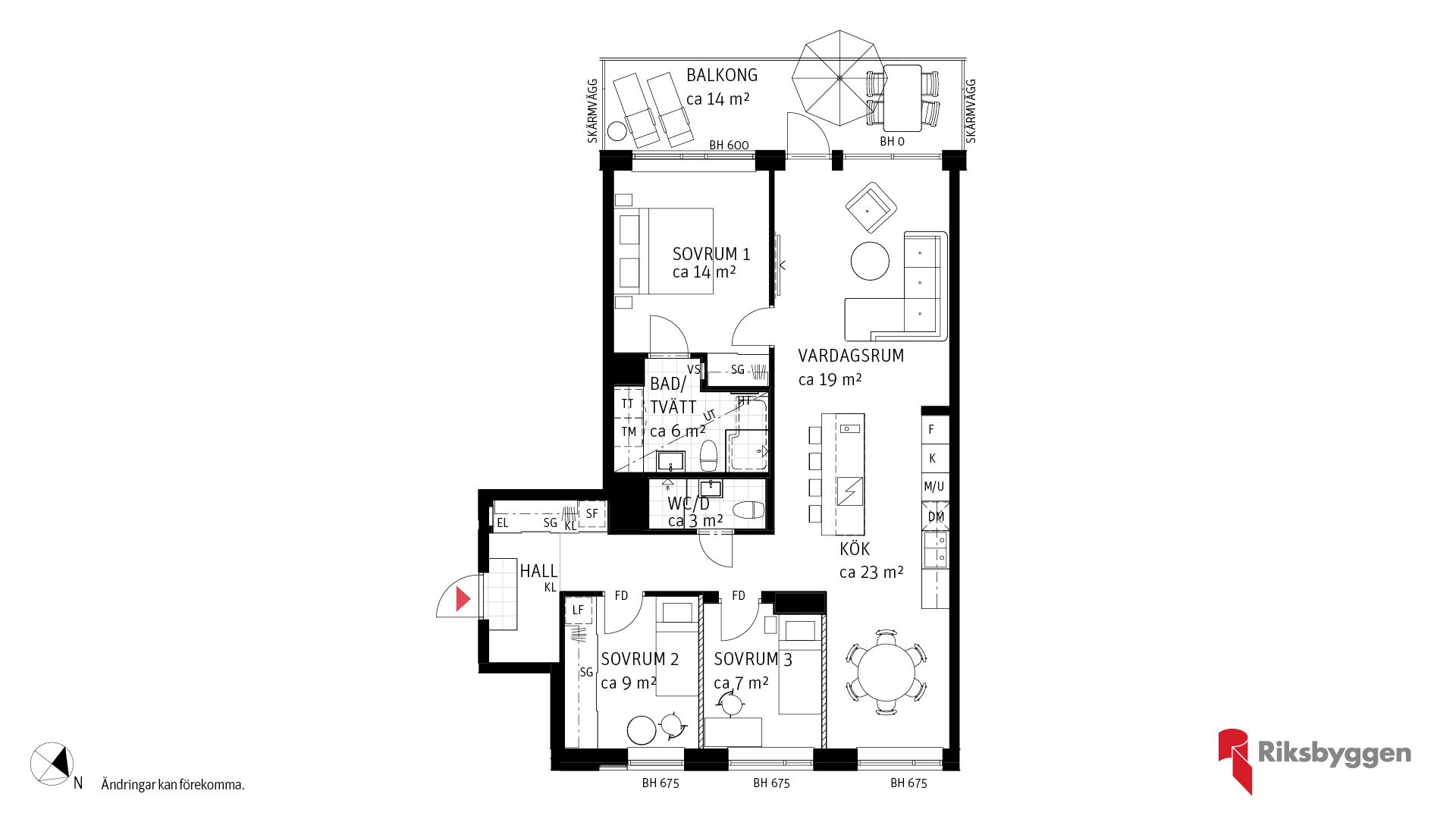 Rymlig 4:a om ca 96 kvm på femte våning. Öppen planlösning med matplats, kök och vardagsrum med utgång till balkong om ca 14 kvm. Kök med köksö för extra social umgänge, förvaring och avlastning. Sovrum 1 med ingång till bad. Sovrum 2 med skjutdörrsgarderob. Sovrum 3. Wc/dusch. Här finns möjlighet att göra om sovrum 2 och 3 till ett större sovrum eller ta bort frånvalsväggen till sovrum 3 till fördel mot en större matplats.