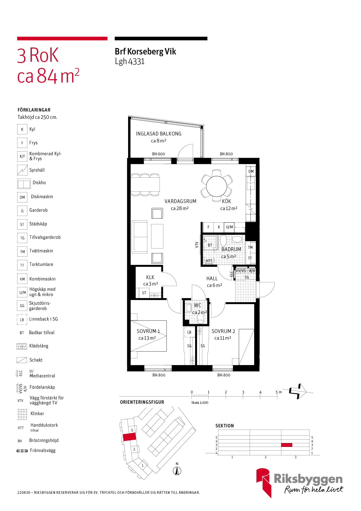 Rymlig 3 rok om 84 kvm med social öppen planlösning på våning 3. Utgång till inglasad balkong från vardagsrum/kök. Två rymliga sovrum med skjutdörrsgarderober. Rymlig klädkammare och extra wc.