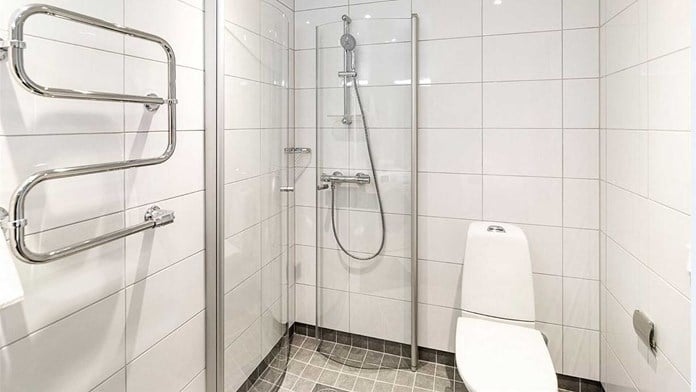 Lägenheterna har ljusa väggar och parkettgolv. Badrummen är kaklade med klinkers på golvet och handdukstork finns. I köken finns kyl och frys, diskmaskin och induktionshäll.