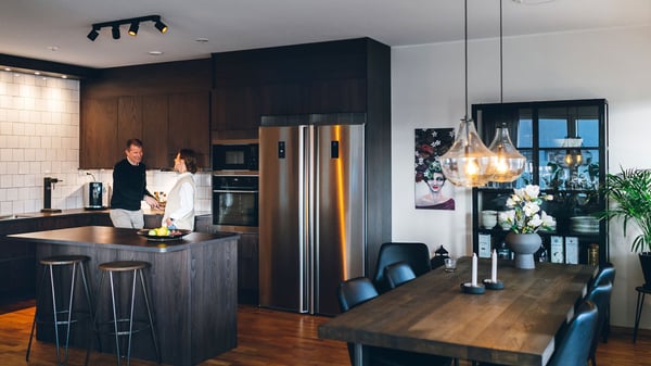 Anneli och Ola lutar sig tillbaka i soffan, smuttar på kaffet och njuter av känslan att bo i en nyproducerad lägenhet där de själva har kunnat vara med och påverka genom tillval.