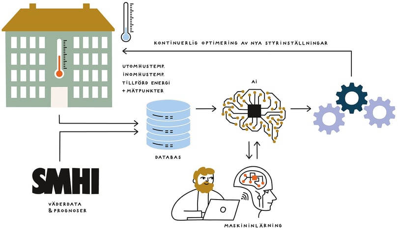 – Genom att väga in olika faktorer som solinstrålning och väderprognoser kan systemet ligga steget före och förutse den mängd värme huset behöver för att hålla rätt temperatur med minsta möjliga tillförsel av värme, berättar Tommy Lampa, säljledare, Affärsområde Fastighetsförvaltning.