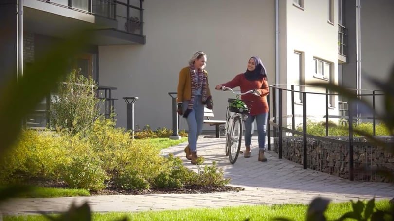 Riksbyggen jobbar med hållbarhet, återvinner värmen från ventilationsluften, lägger solcellspaneler på tak, anlägger odlingslotter och ger busskort i startpaketet till de boende.