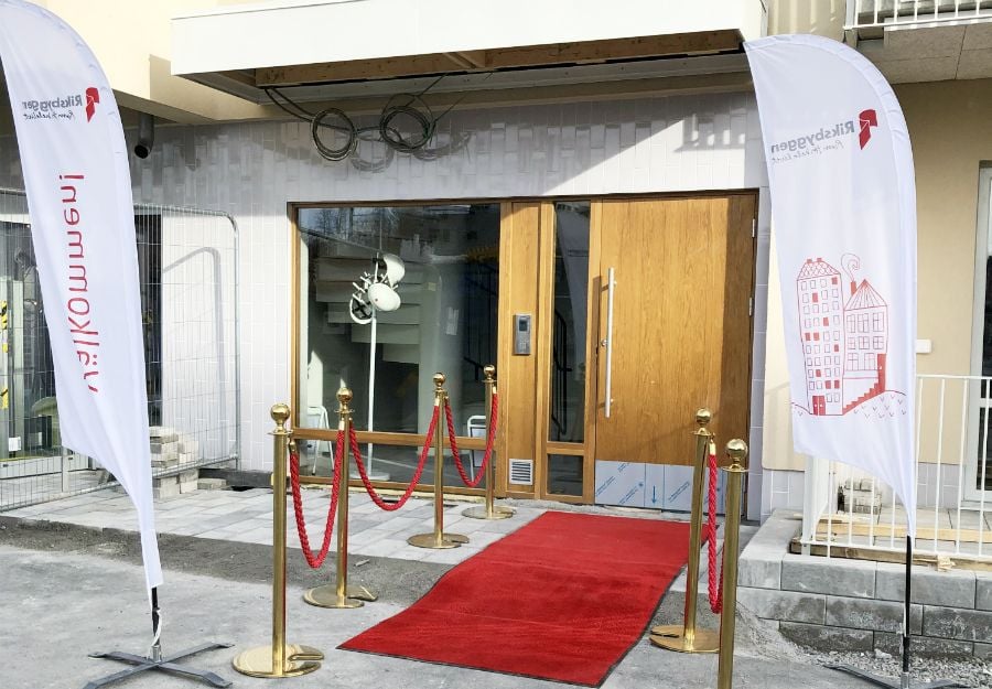 Riksbyggen rullar ut den röda mattan för de första som flyttar in i Brf Ljuspunkten i Upplands Väsby. Bygget av det totalt 95 lägenheterna startade i oktober 2017 och nu inleds inflyttningen i den första etappen.