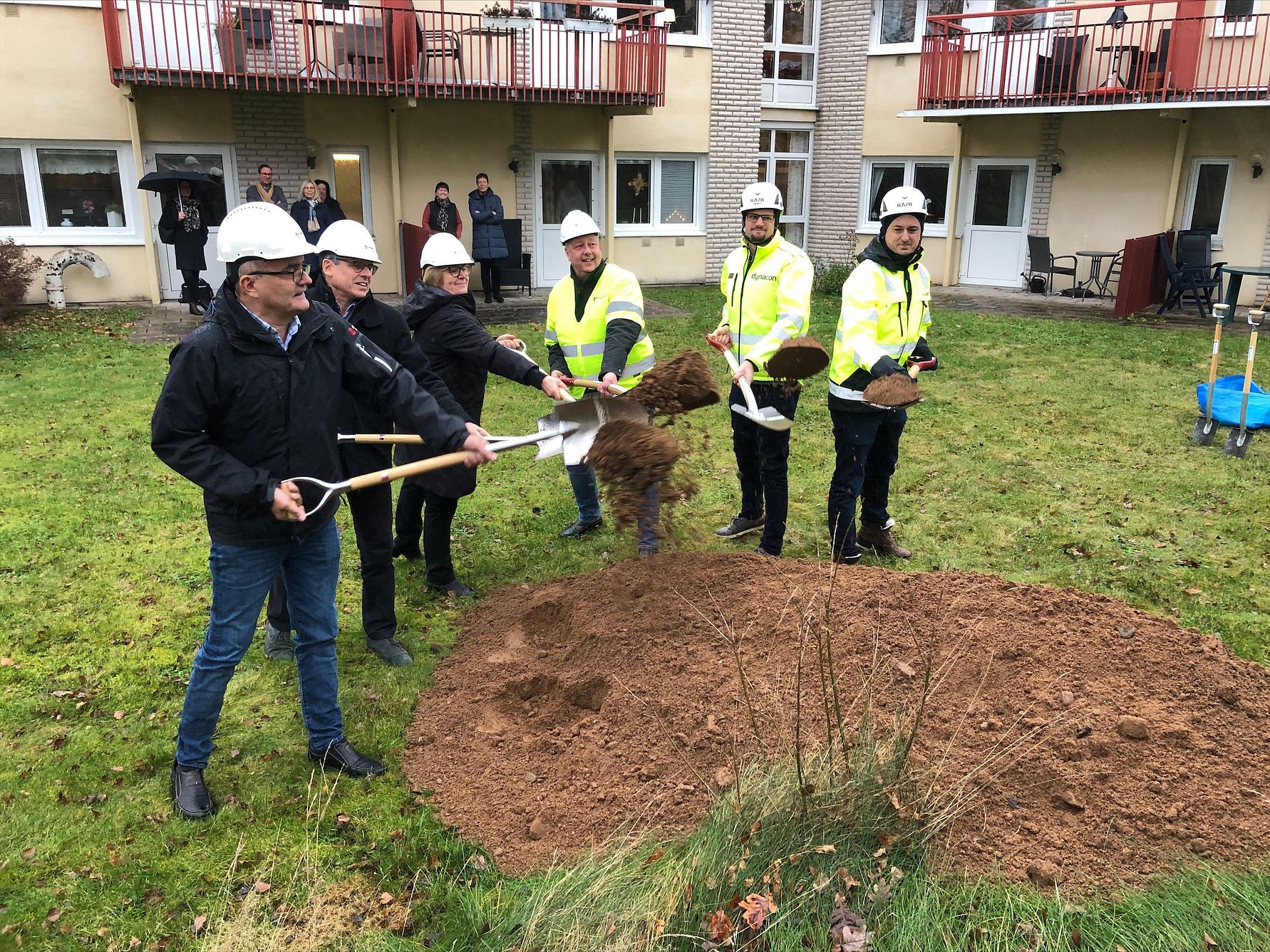 Kooperativa hyresrättsföreningen Hultsfreds trygga hem och Riksbyggen har tagit det första spadtaget för om- och tillbyggnation av fastigheten Solvändan 2, äldreboendet Lindgården, i Hultsfreds kommun. I en första etapp ska 27 helt nya lägenheter byggas intill de befintliga och totalt blir det 57 nya eller ombyggda lägenheter.