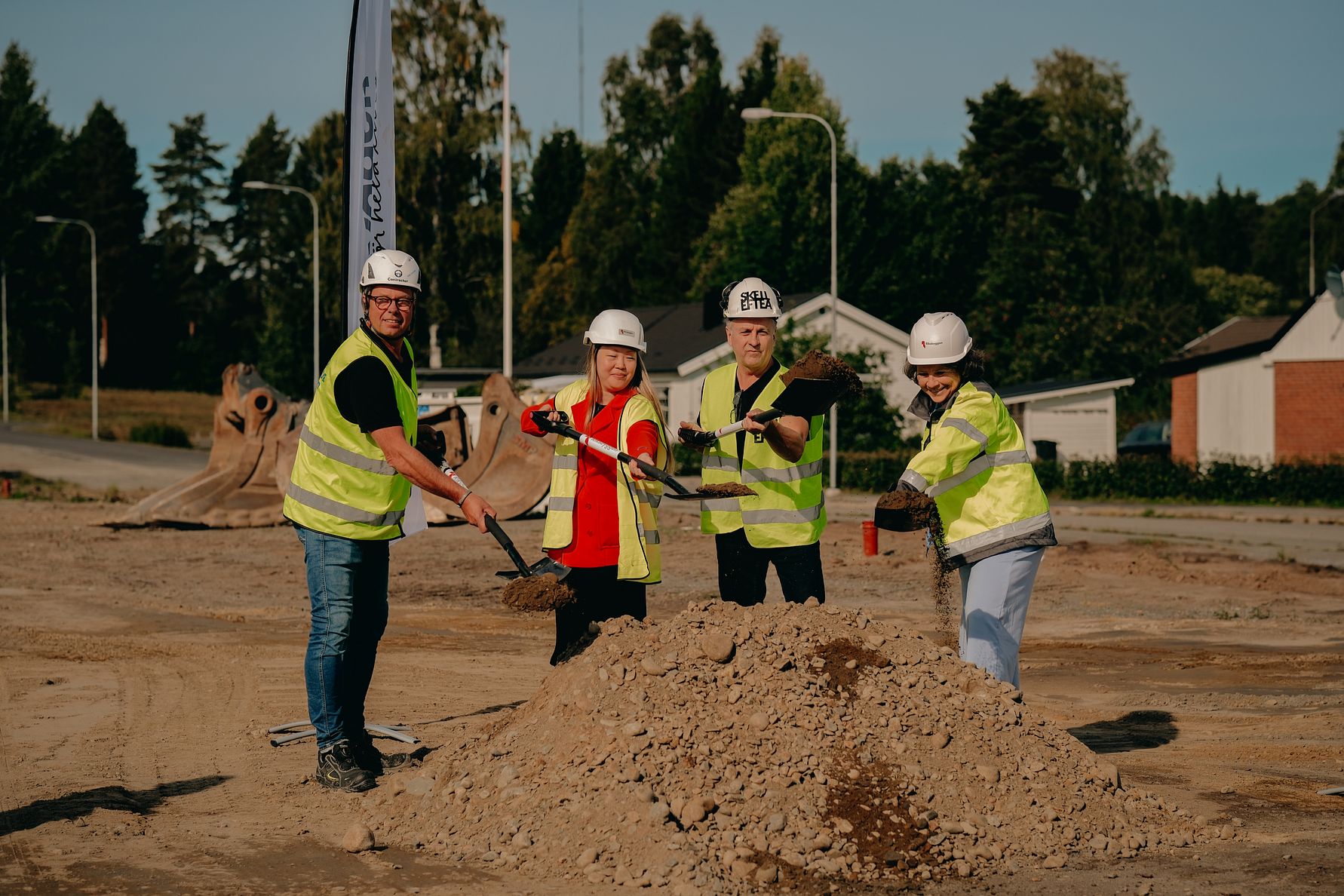 De första som satte spaden i marken var Lorents Burman, kommunalråd Skellefteå kommun, Ulrika Nyström, affärsområdeschef Riksbyggen, Kurt Nyström, vd Contractor Skellefteå och Evelina Lundgren, köpare.